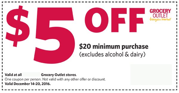 Coupons for Grocery Outlet - The Penny Pantry In a Mailer: This month, I received a $3 off $30 or $5 off $50 purchase in a coupon booklet called "Local Buzz". I have received these the last couple of months. I also received a $3 off $30 or $5 off $40 in a ValPak mailing that I have been receiving for a long time. In an E-mail: if you sign up for their emails, you will receive a $3/$25 ...